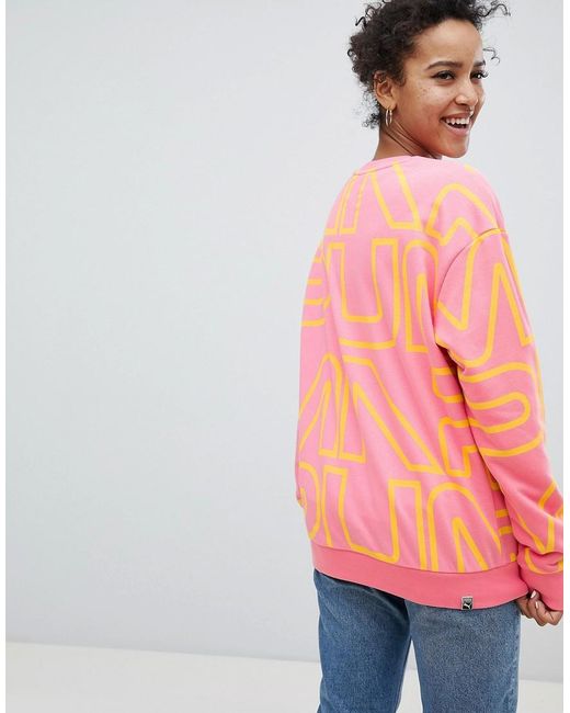 Sweatshirt von PUMA, Mehr als nur eine Freizeitjacke für Faulenzer, Rundhalsausschnitt, Tief sitzende Schulternähte, durchgehendes Logomuster, je größer das Logo, je besser, anliegende Bündchen, lockerer Sitz, wunderbar locker und leger, Exklusiv bei ASOS. PUMA kombiniert die Welt des Sports und des Lifestyles miteinander in seinen innovativen Produkten, die in der Welt des Sports und der Mode zuhause sind. Ausgezeichnet durch modernes Design und innovative Sport-Technologien, miteinander die Kollektion von Schuhen und Kleidern stellt sicher, dass die Athleten eine gute Figur machen, sei es auf oder neben dem Sportplatz. Baumwolle/ Polyester/ Wolle. Farbe: pink