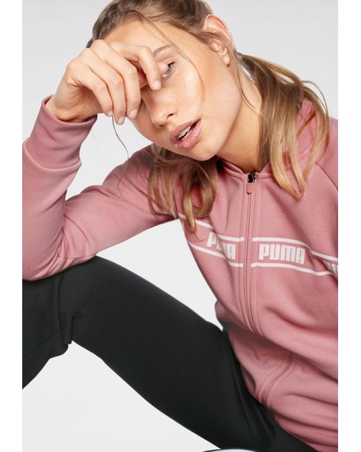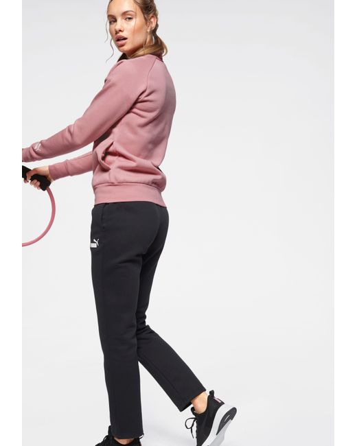 Suchst du einen passenden Begleiter für Sport und Freizeit gleichermaßen? Dann liegst du mit dem Jogginganzug von Puma genau richtig! Er ist mit seiner innen weich angerauten Sweatqualität nicht nur superangenehm zu tragen, sonder macht auch mit dem Logoschriftzug vorne und dem Stehkragen optisch einiges her. Der Elastikbund sorgt für bequemen Komfort. Softe Rippbündchen an Ärmeln, Saum und Beinabschlüssen garantieren dabei volle Bewegungsfreiheit und einen perfekten Sitz. Da musst du dich gar nicht zwischen Fitnessstudio oder Bummeln entscheiden, denn der Sportanzug macht problemlos alles mit. Ein toller Begleiter für jede Gelegenheit: der Jogginganzug von Puma! Farbe: pink