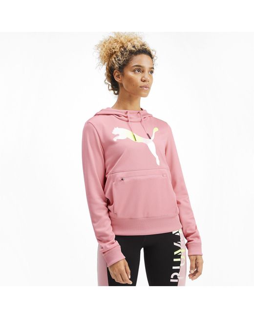 PRODUCTSTORY Wenn es draußen kalt ist und du trotzdem mit Spaß an dein Workout gehen willst, geht einfach nichts über die perfekte zusätzliche Bekleidungsschicht. Das SHIFT Trainingssweatshirt mit verstellbarer und super weicher dreiteiliger Kapuze mit Trichterkragen ist eine solche perfekte Schicht. Während unsere integrierte dryCELL Technologie für einen optimalen Feuchtigkeitsabtransport sorgt, bietet die unter dem PUMA Cat Logo mit Farbwechseleffekt sitzende Reißverschlusstasche praktischen Stauraum für deinen Kleinkram. Farbe: pink