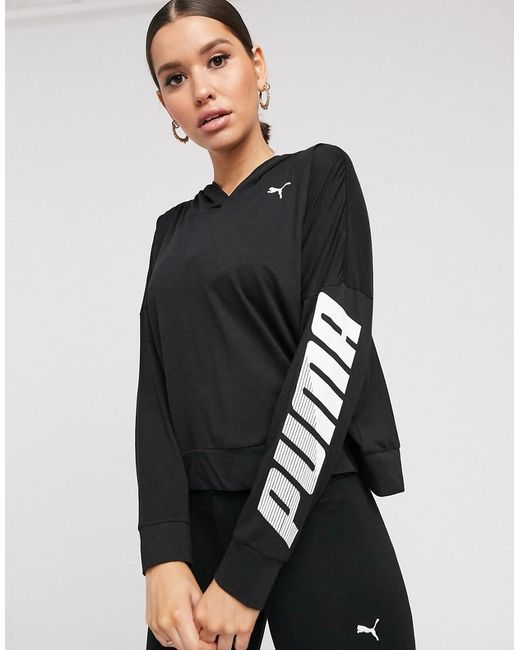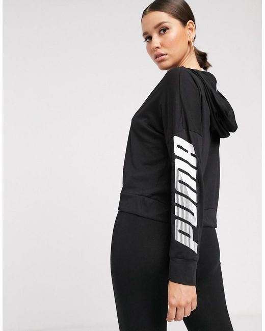 Kapuzenpullover von PUMA, genau dein Freizeitstil, fixierte Kapuze, Logo, Cropped-Länge, lockerer Sitz, diese herrlich bequeme, lockere Passform. PUMA kombiniert die Welt des Sports und des Lifestyles miteinander in seinen innovativen Produkten, die in der Welt des Sports und der Mode zuhause sind. Ausgezeichnet durch modernes Design und innovative Sport-Technologien, miteinander die Kollektion von Schuhen und Kleidern stellt sicher, dass die Athleten eine gute Figur machen, sei es auf oder neben dem Sportplatz. Baumwolle/ Jersey/ Wolle. Farbe: schwarz