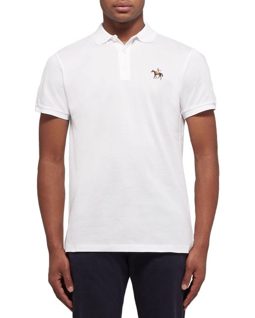 Pikee, Logo, Stickerei, einfarbig, Polokragen, kurze Ärmel, vorderseitiger Verschluss, Knöpfe, ohne Taschen, Saum mit Seitenschlitz. 100% Baumwolle. Farbe: weiß