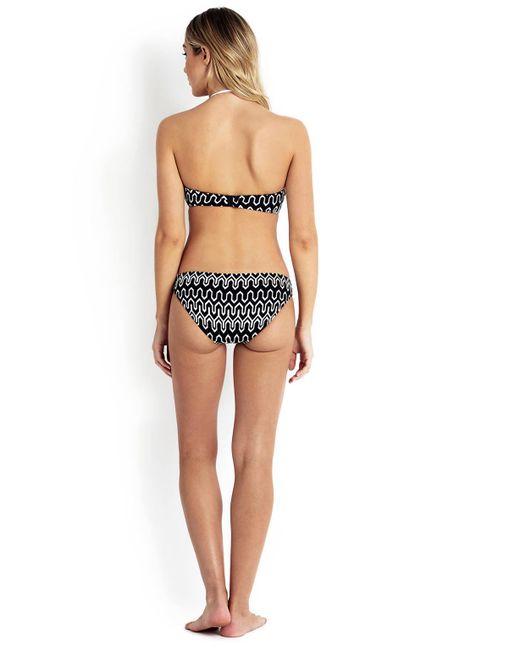 Der Bikini-Hose OPTIC WAVE von SEAFOLLY begeistert mit einem verspielten, graphischen Design aus kontrastierenden Mustern und eine dezent strukturierten Oberfläche. Gleichzeitig wurde das Modell für Damen hochwertig Verarbeitet und sitzt dank elastischer Qualität perfekt an. Mit dem passenden Bikini-Top ist Ihnen ein trendiger Beach-Look garantiert. Must-have! Details: Schnitt: Hipster. Hüfthoher Bund. Hoher Beinausschnitt. Strukturdesign mit graphischen Elementen. Gefüttert. Farbe: schwarz