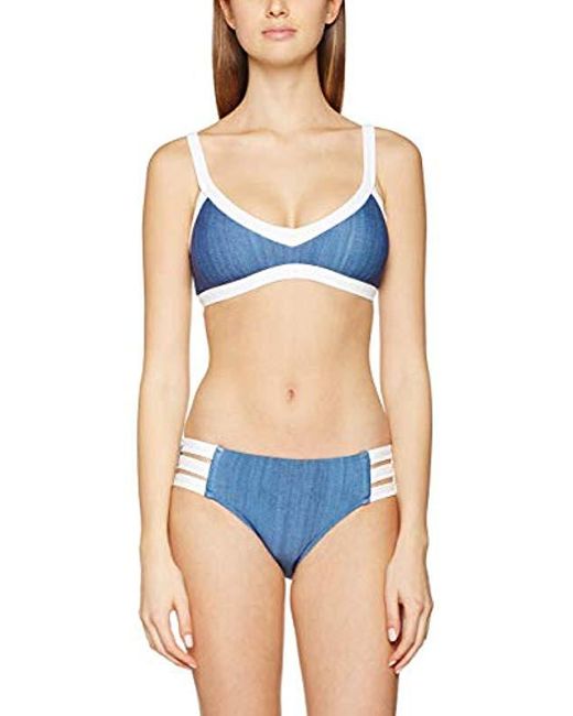 Damen Block Party Multi Strap Hipster Bikinihose in blau