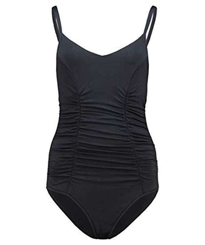 Weiter zu AmazonDer Badeanzug von Seafolly zaubert mit Raffungen an der Vorderseite und einer dekorativen Ausschnitt-Lösung am Rücken eine beneidenswerte Silhouette, die an Strand und Pool für bewundernde Blicke sorgt. V-Ausschnitt - DD-Cups mit Unterbrustbügeln - verstellbare und am Rücken aushakbare Träger - Raffungen an der Vorderseite - normal hohe Beinausschnitte - tiefer Rückenausschnitt mit Querträgern - durchgehend gefüttert - Pflegehinweis: Schonwaschgang bei 30 Grad. Material: - Obermaterial 1: 93% Nylon, 7% Elasthan - Obermaterial 2: 80% Nylon, 20% Elasthan - Futter: 88% Nylon, 12% Elasthan. Pflegehinweise: nicht chemisch reinigen; nicht im Trockner trocknen; nicht bügeln; Schonwaschgang 30 Grad; nicht bleichen. Teile tierischen Ursprungs: Nein. Farbe: schwarz
