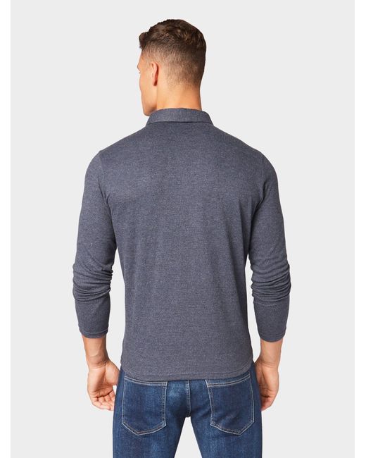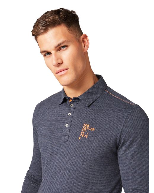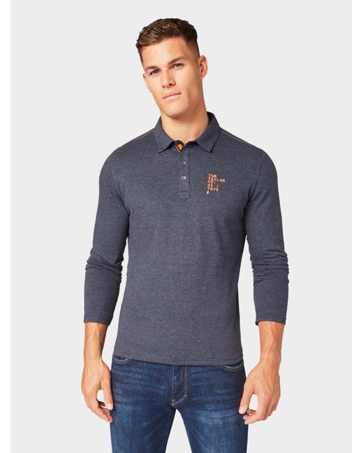 Langarm-Poloshirt mit Stickerei für Männer (unifarben mit Print, langärmlig mit Kent-Kragen und metallischer Knopfleiste) Aus strukturiertem Jersey, mit Schriftzug-Stickerei auf Brusthöhe, Logo-Print an der Unterseite des Kragens, mit doppelt vernähten Abschlüssen, mit kontrastiven Luftmaschen. Farbe: blau