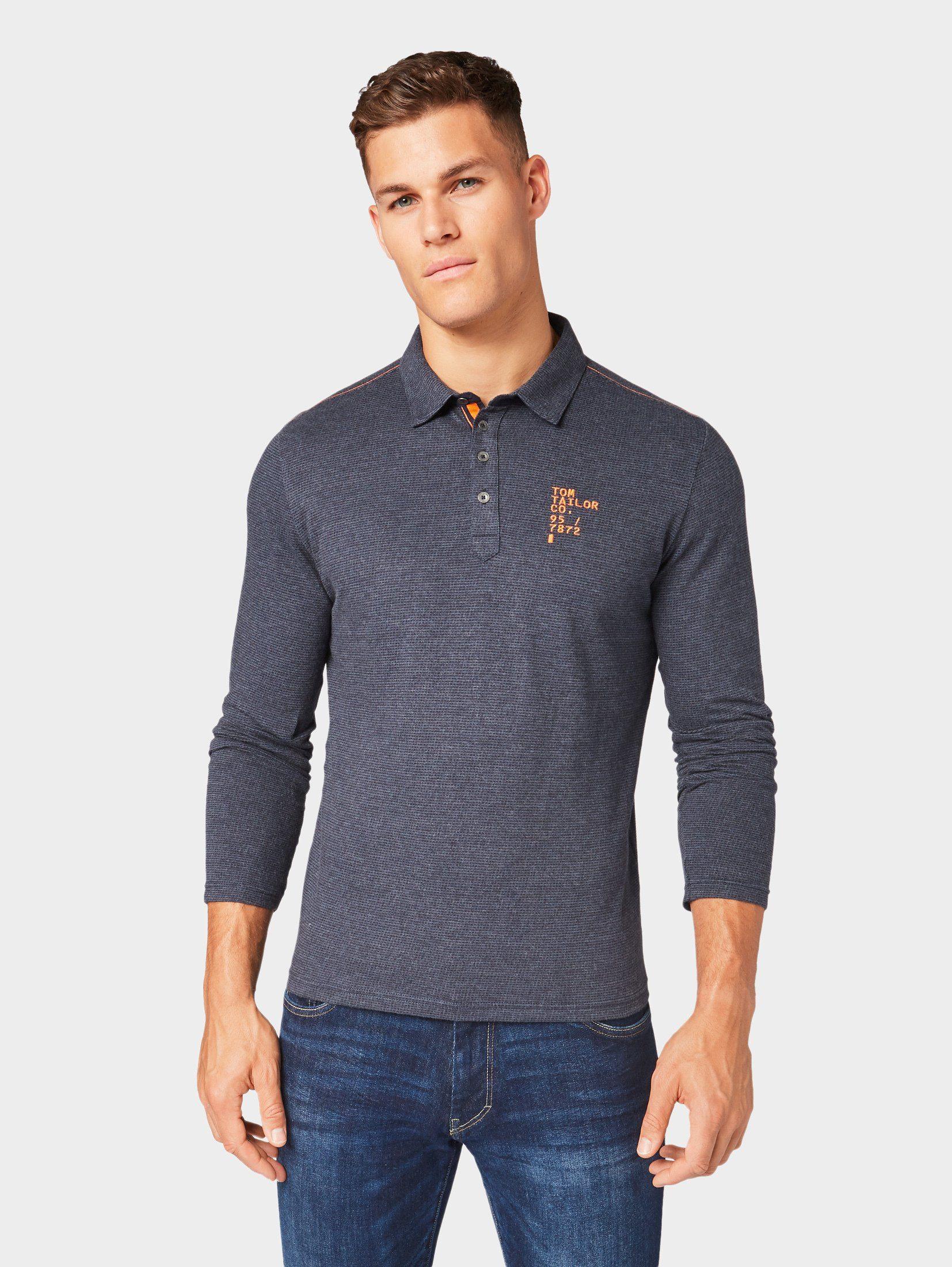 Herren Langarmshirt »Langarm-Poloshirt mit Stickerei« in blau