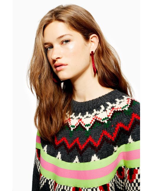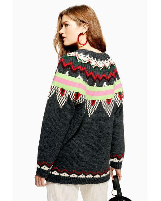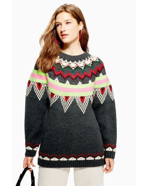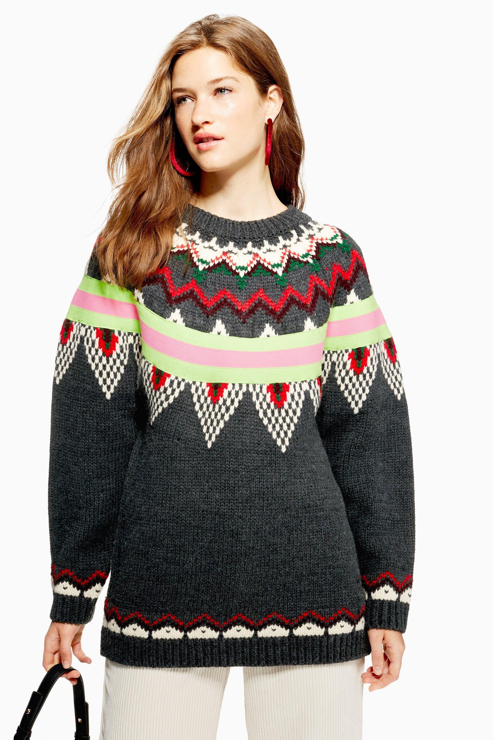 Damen Gestreifter Pulli mit Norwegermuster in grau