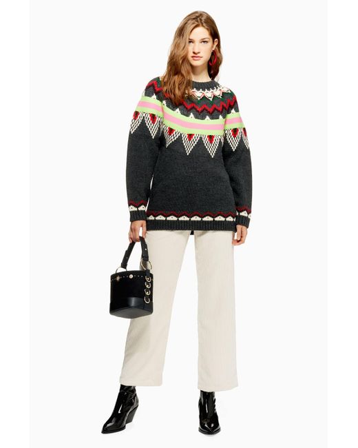 Gestreifter Pulli mit Norwegermuster. 100 % Acryl. Maschinenwäsche. Farbe: grau