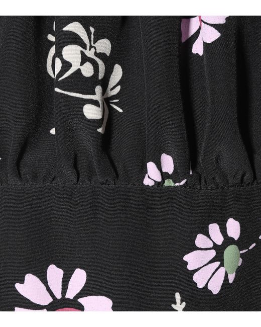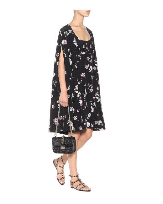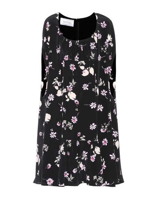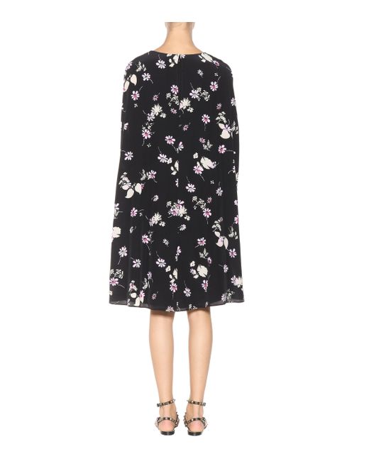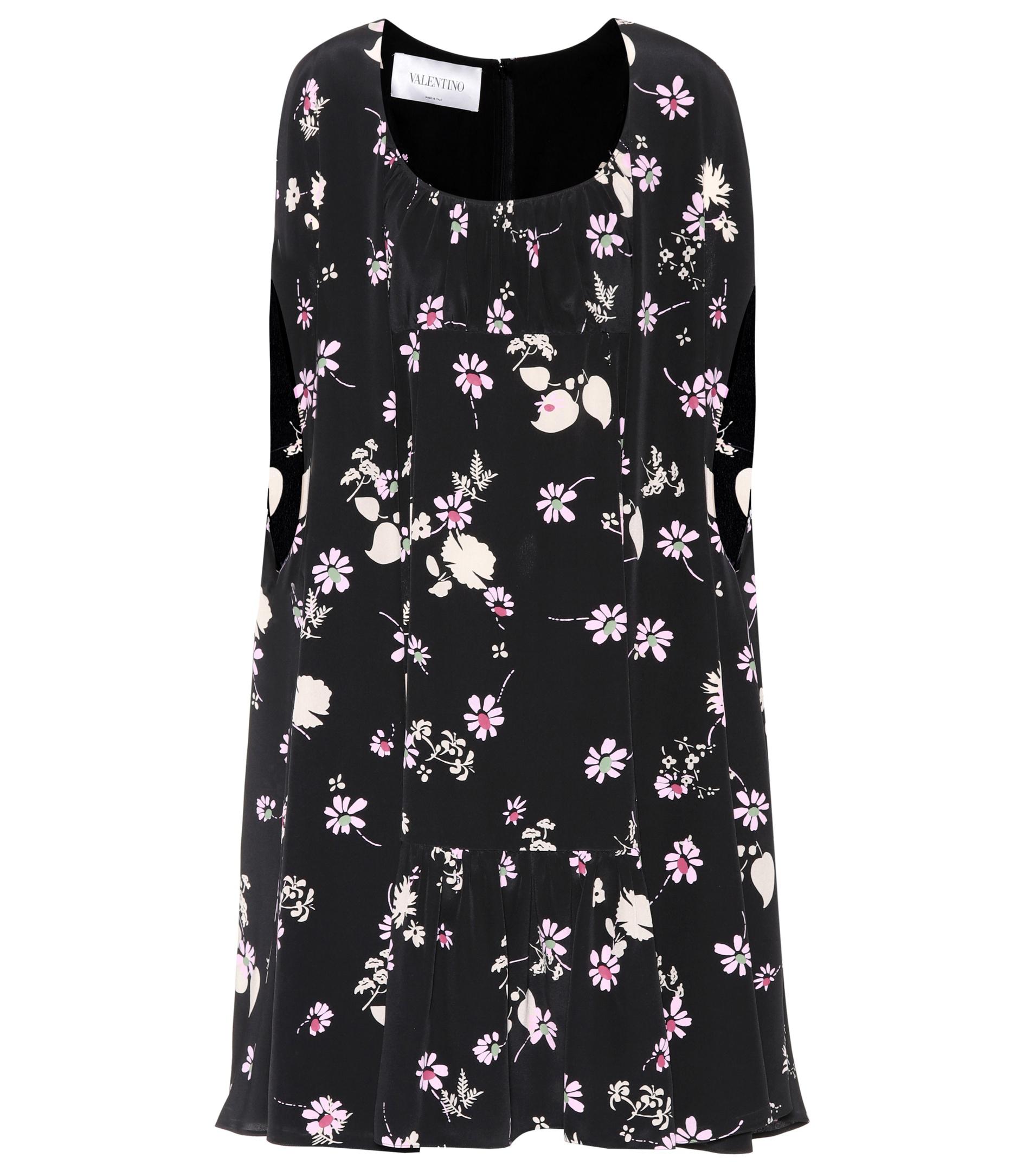 Dieses Kleid von Valentino wurde aus schwarzem Crêpe de Chine aus reiner Seide gefertigt und mit einem floralen Muster in zarten Pastellfarben bedruckt. Farbe: schwarz