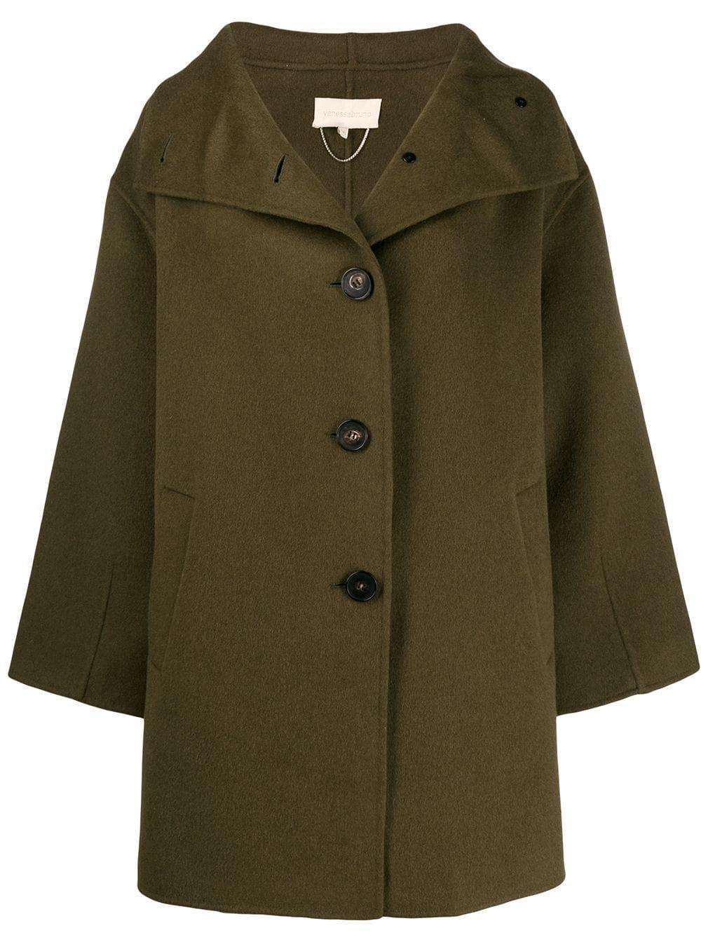 Mantel im Oversized-Look von Vanessa Bruno. Merkmale: breiter Kragen, Knopfverschluss vorne, lange Ärmel und Oversized-Passform. Farbe: grün
