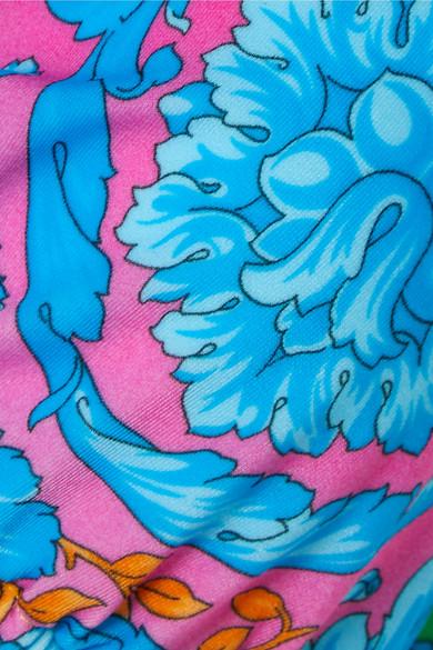 Weiter zu NET-A-PORTERDonatella Versace kreiert mit auffälligen Prints und leuchtenden Farben immer wieder eindrucksvolle Modelle. Dieses Bikini-Oberteil hat klassische Triangel-Cups mit herausnehmbaren Polstern und wurde mit den markentypischen Blumen sowie Barockmotiven aus dem Archiv bedruckt. Vervollständigen Sie das Set mit dem passenden Höschen und stecken Sie eine der Haarspangen des Hauses in das gewellte Haar. Tragen Sie dazu: Illesteva Sonnenbrille, Sophie Buhai Creolen. Mehrfarbiges Stretch-Nylon. Wird im Nacken und am Rücken gebunden. 80 % Nylon, 20 % Elastan; Futter: 72 % Nylon, 28 % Elastan. Handwäsche. Hergestellt in Italien. Farbe: blau