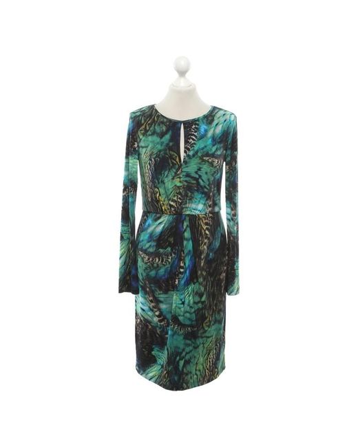 Merkmale / Details:. 95% Polyester, 5% Elasthan. Innenfutter: 100% Polyester. Reißverschluss hinten. Schlitzausschnitt. Drapierung, symmetrisch Zustand:. Allgemein: Tragespuren, unauffällig. Farbe: grün