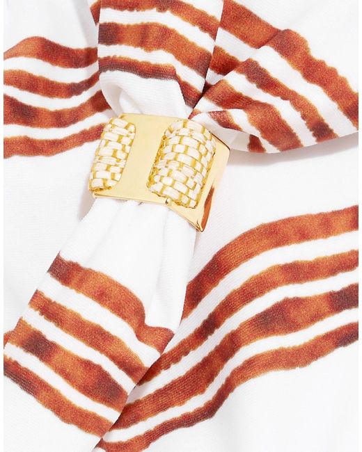 Kunstjersey, ohne Applikationen, zweifarbiger Print, zum Binden, rückseitiger Verschluss, innen gefüttert, Stretch. 85% Polyamid, 15% Elastan. Farbe: weiß