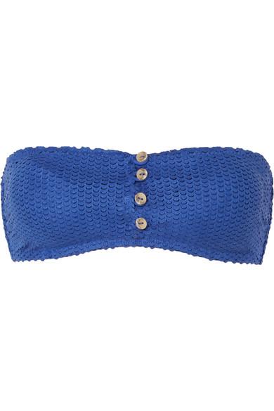 Paula Hermanny, Gründerin von ViX, hatte Schwierigkeiten, Bademode zu finden, die ihr gefiel, und entwarf deshalb eigene – Sie können sich also darauf verlassen, dass die Designerin versteht, wie wichtig Schnitt und Detailgenauigkeit sind. Dieses Bandeau-Bikini-Oberteil ist perforiert, was einen coolen Schuppeneffekt erzielt, und dank der Polsterung bietet es zudem Halt. Wir empfehlen das passende Höschen dazu, wenn Sie am Pool entspannen. Tragen Sie dazu: Illesteva Sonnenbrille, STONE AND STRAND Ring, Wwake Ring, STONE AND STRAND Ring, Catbird Armband, Jennifer Fisher Ohrringen, Monica Vinader Armband. Königsblauer Stretch-Polyester. Ohne Verschluss. 92 % Polyester, 8 % Elastan; Futter: 75 % Polyamid, 25 % Elastan. Handwäsche. Bodylotion, Sonnencreme, Öl und Chlor können Verfärbungen verursachen. Dies ist jedoch nicht auf Fabrikationsfehler zurückzuführen. Bitte beachten Sie die Pflegehinweise, um den Artikel bestmöglich zu erhalten. Farbe: blau