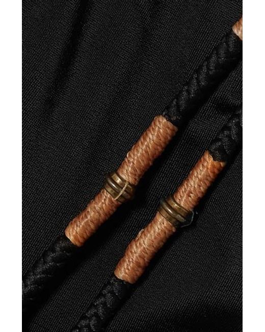 Das "Laura" Bikini-Höschen von ViX ist an den Seiten mit Zierperlen versehen und mit gewachsten braunen Fäden umwickelt, was dem tief sitzenden Modell Bohème-Flair verleiht. Es bietet wenig Bedeckung und bildet mit dem passenden Oberteil ein Set. Tragen Sie dazu: Le Specs Sonnenbrille, Alighieri Kette. Schwarzes Stretch-Polyamid. Ohne Verschluss. 84 % Polyamid, 16 % Elastan; Futter: 75 % Polyester, 25 % Elastan. Handwäsche. Bodylotion, Sonnencreme, Öl und Chlor können Verfärbungen verursachen. Dies ist jedoch nicht auf Fabrikationsfehler zurückzuführen. Bitte beachten Sie die Pflegehinweise, um den Artikel bestmöglich zu erhalten. Farbe: schwarz