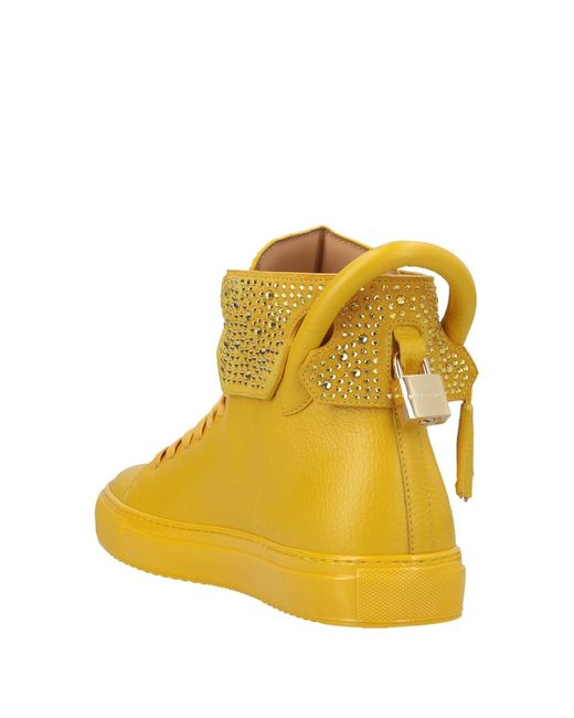Leder, gehärtetes Leder, Strass, Logo, einfarbig, Schnürverschluss, runde Spitze, ohne Absatz, Innenfutter in Leder, Gummisohle, Enthält nichttextile Teile tierischen Ursprungs. Leder. Farbe: gelb