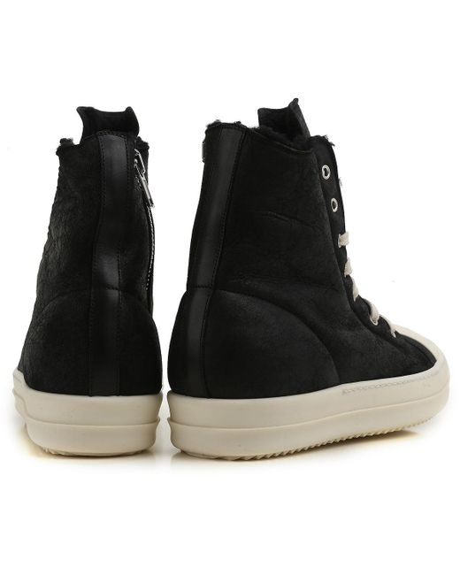 Schwarz. Günstig im Sale. Herbst Winter 2017/18.Made in Italy. Hi Top. Runde Schuhkappe. Gummi Zehenkappe. Schnürschuh. Kommt mit Schuizbeutel. Leder. Herrenschuhe: Rick Owens Sneaker für Herren. Tennisschuh. Turnschuh. Sneaker. Andere Farben: Milchfarben.