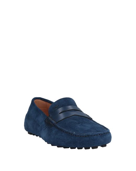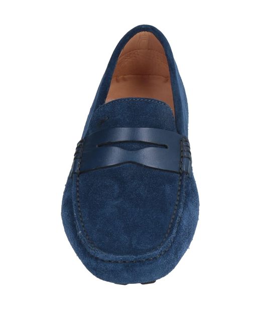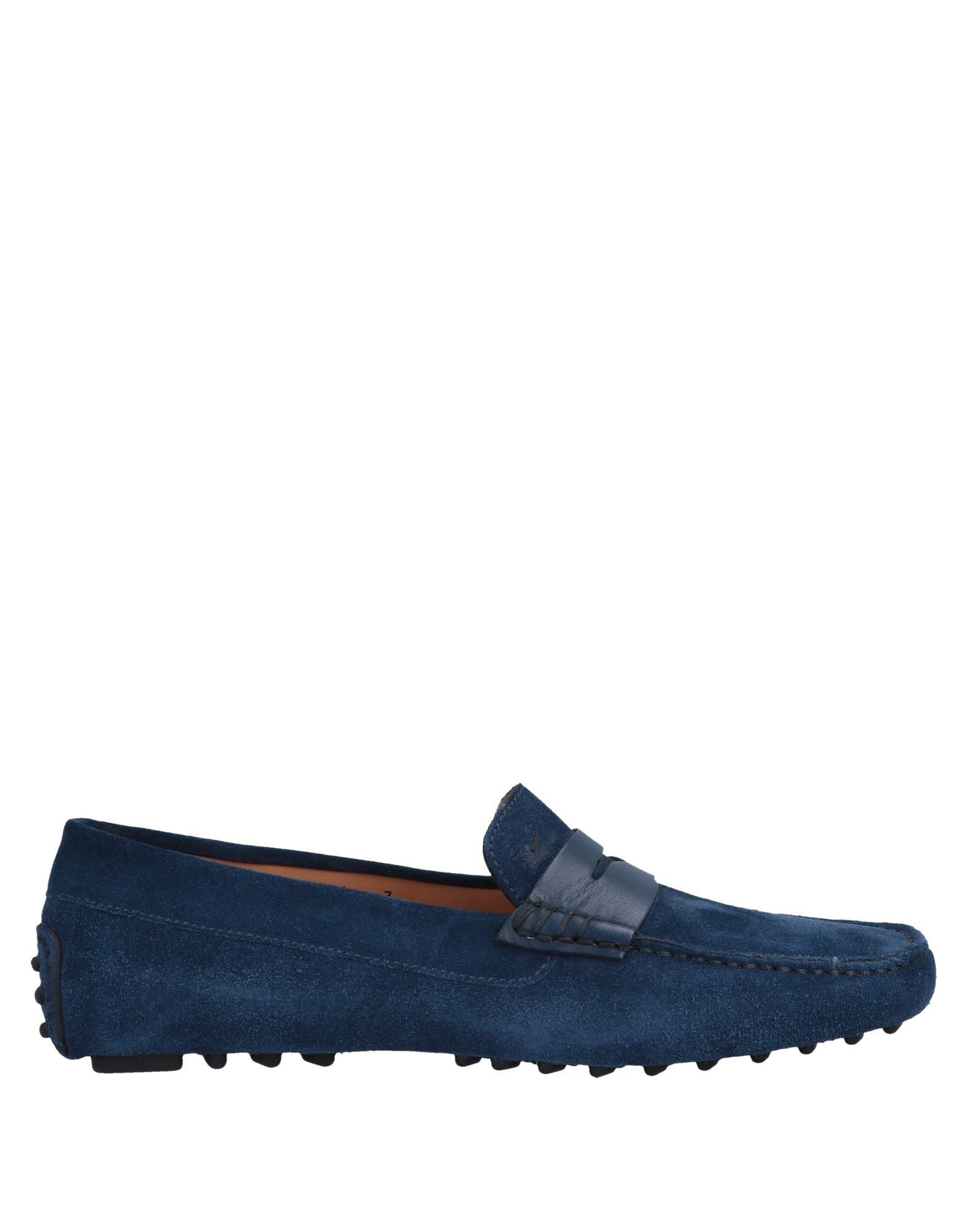 Flecken-Effekt, Logo, einfarbig, runde Spitze, ohne Absatz, Innenfutter in Leder, Strukturierte Sohle, Enthält nichttextile Teile tierischen Ursprungs. Mokassins, groß ausfallend. Leder. Farbe: blau