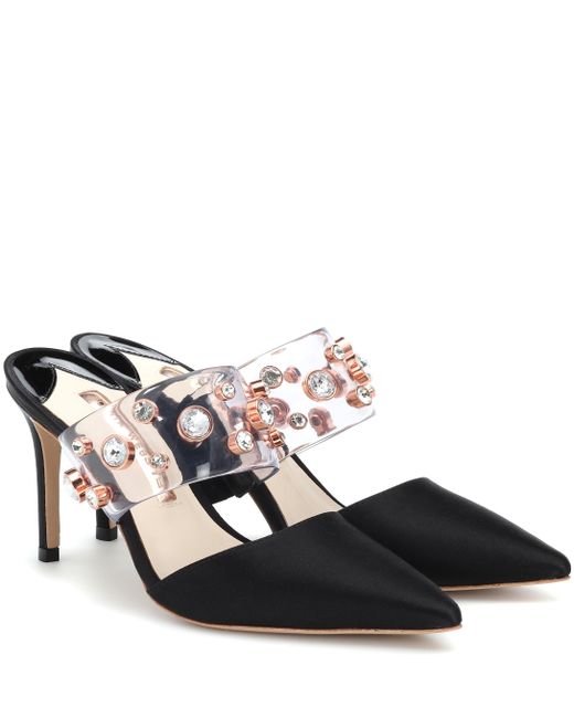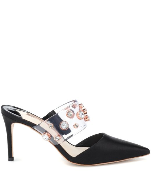 Damen Mules Dina Mid aus Satin in schwarz