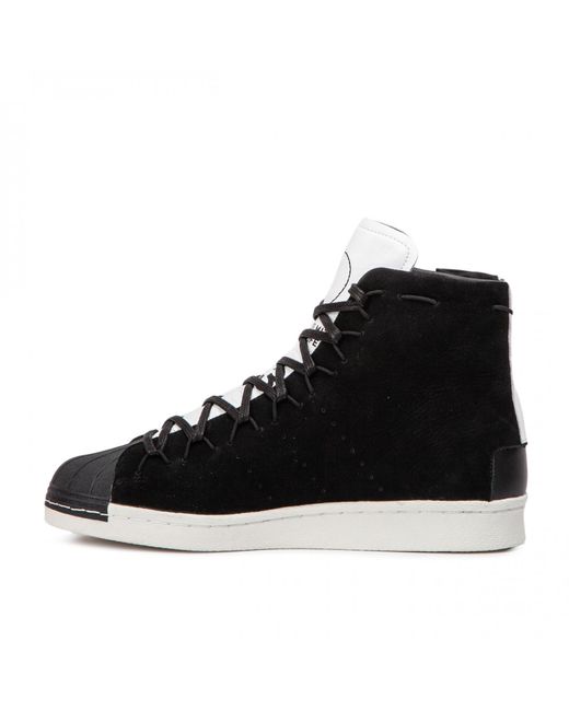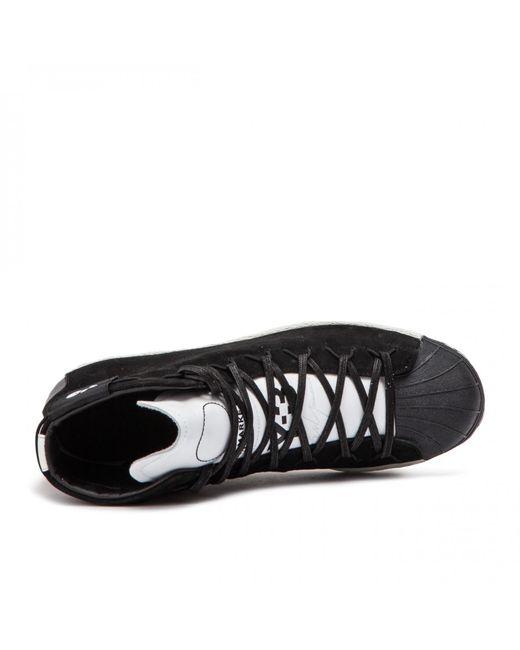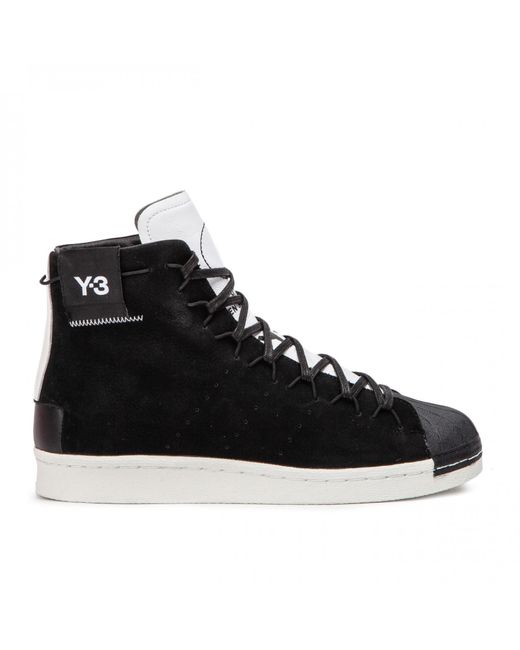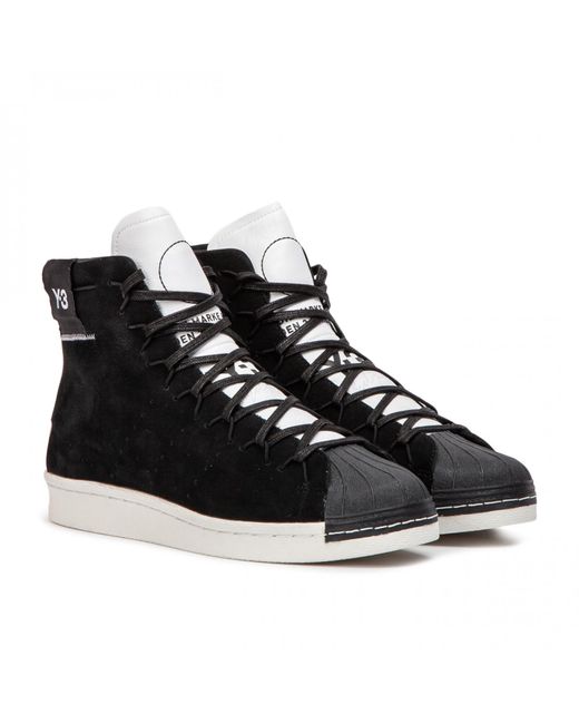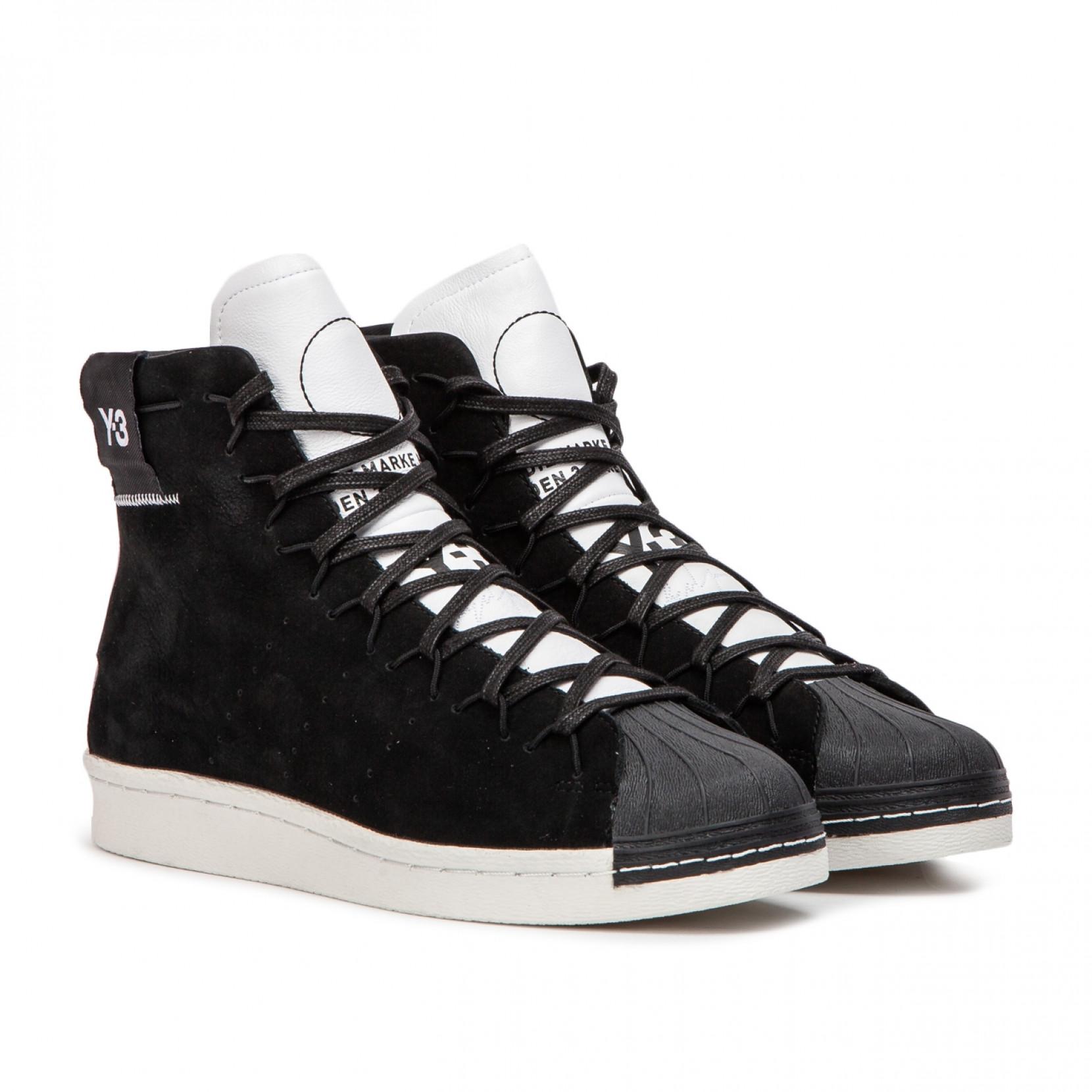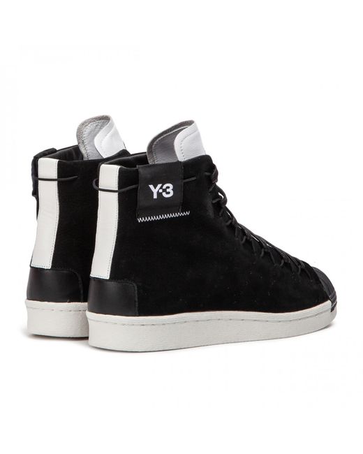 Adidas Y-3 Super High (Schwarz)Y-3 erweitert das Vermächtnis von adidas um eine Weiterentwicklung der legendären adidas Superstar-Schuhe. Wildleder-Obermaterial mit Lederzunge und Fersenstreifen Gummikappe Futter aus Leder und Canvas. Farbe: schwarz